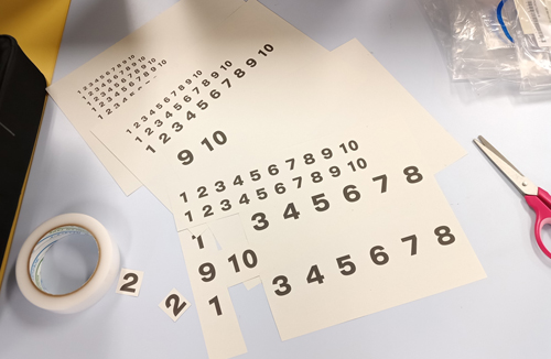 そして。 A4用紙に番号を印刷して、養生テープでクルリと回せば、すべり落ちないことがわかりました。 何かあれば、簡単に外すこともできます。 バックを買い換えるような費用も無用です。 SAさんからも先生方からも、かなりの好評をいただきました。