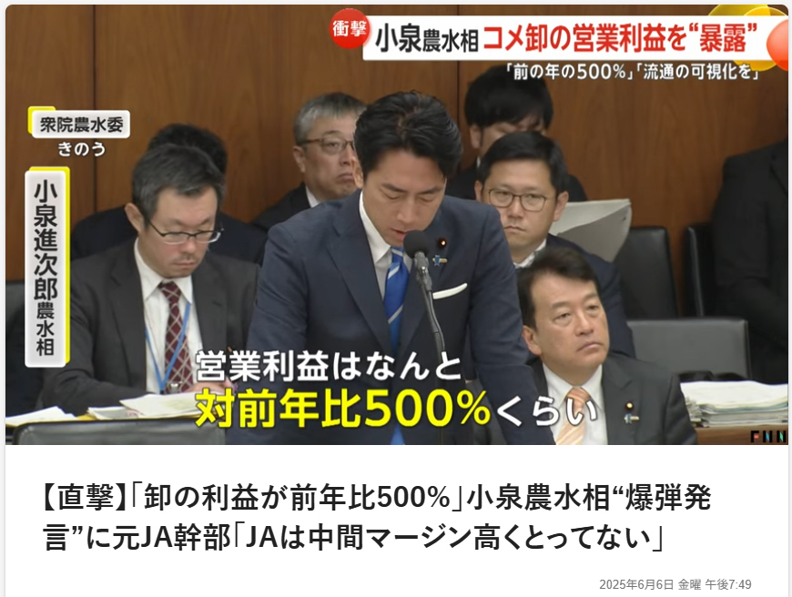 | 小泉農林水産大臣 | 2025年6月7日(土) | |