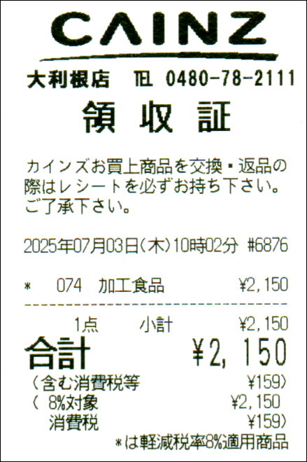 | 備蓄米、買えました | 2025年7月3日(木) | |